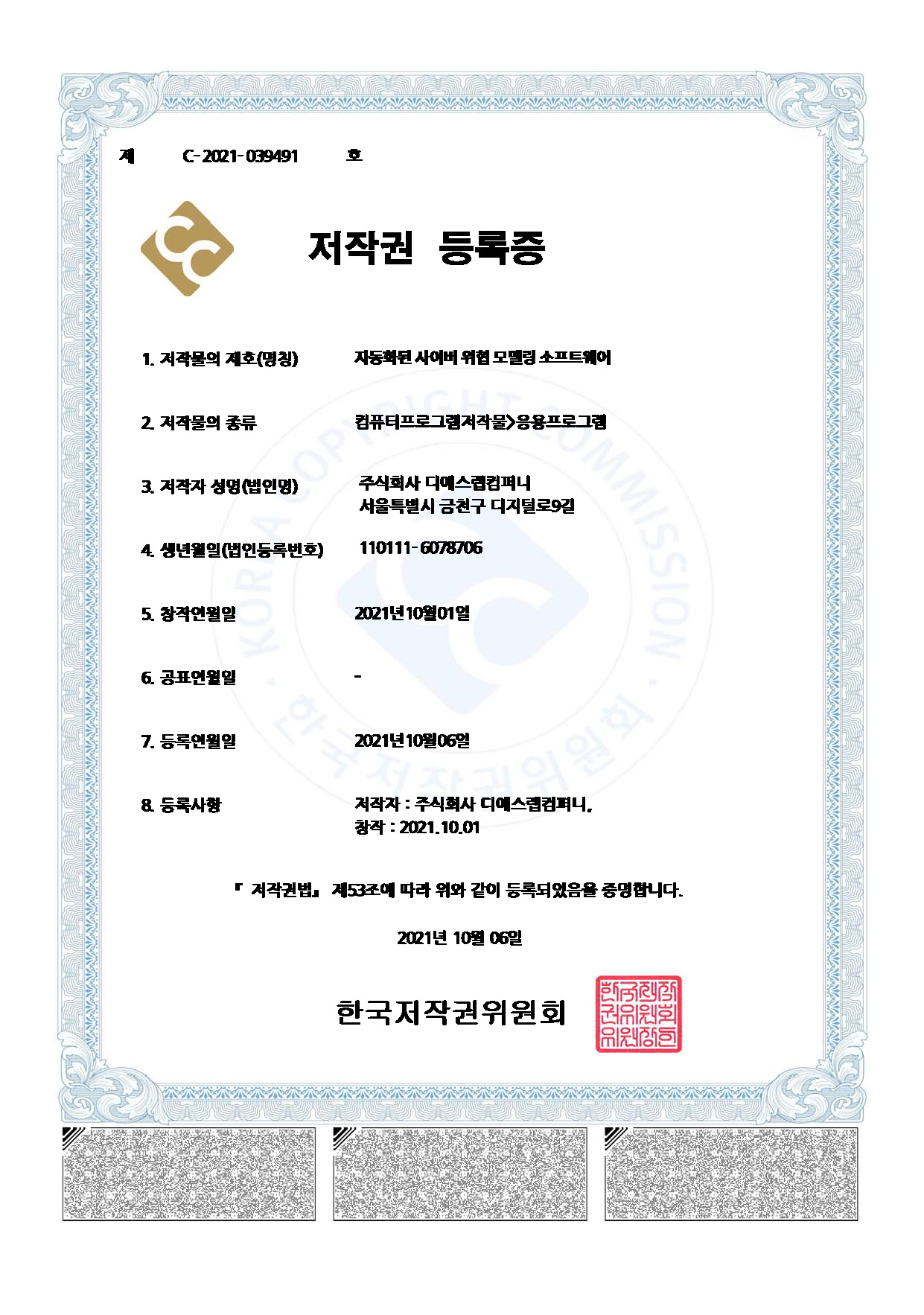 [ 등록증 ] 자동화된 사이버 위협 모델링 소프트웨어
